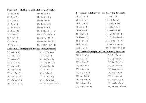 Expanding Single Brackets Worksheet Teaching Resources