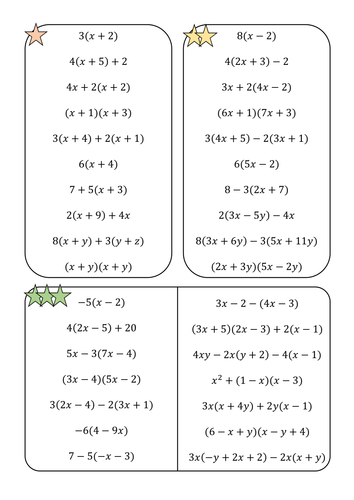 Expanding Brackets Rag Worksheet Teaching Resources
