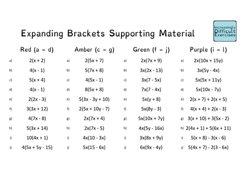Increasingly Difficult Questions Expanding Brackets Teaching Resources